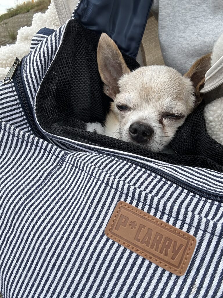 にーちゃんもお散歩したり大好きなバッグで気持ちいい外の空気を吸ってまったりお昼寝したり🐶