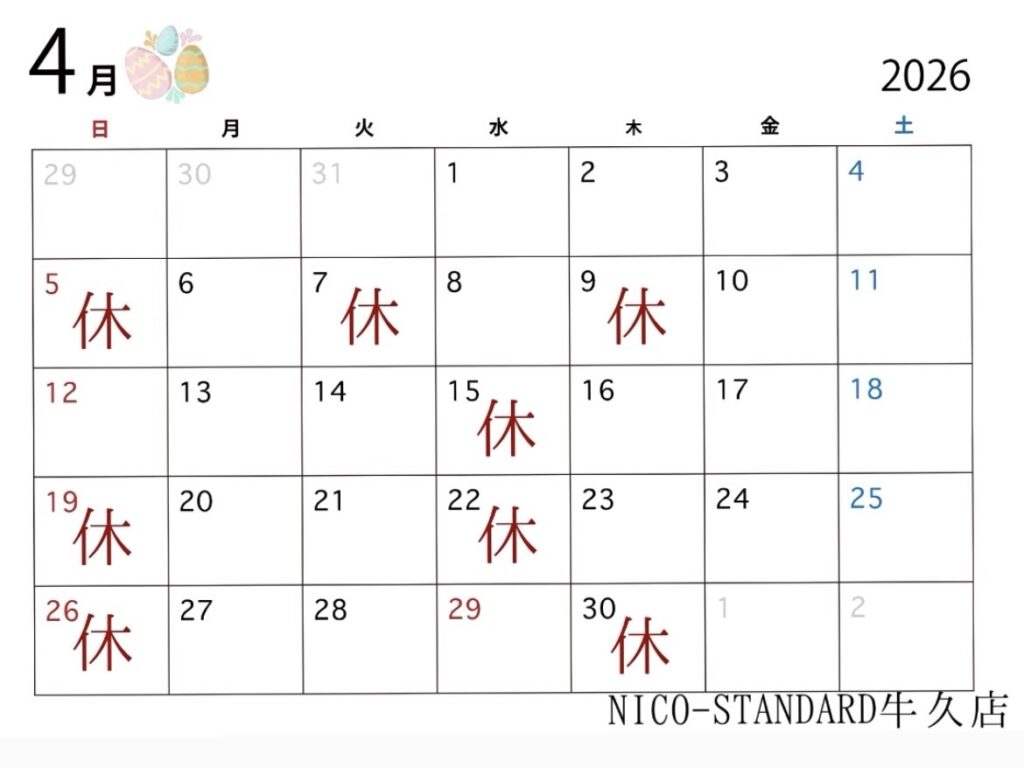 4月の店休日