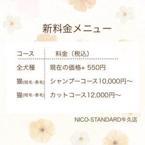 →各犬種・猫種・コース料金を見直し、